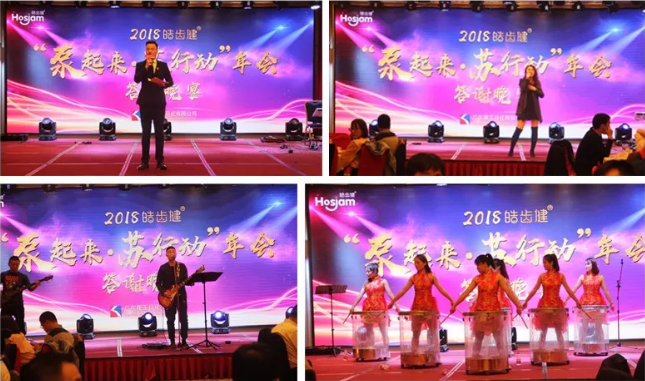 晚上19:00,為回饋廣大客戶一直以來(lái)對(duì)皓齒健的支持與陪伴,我們特地準(zhǔn)備了一場(chǎng)美輪美奐的視聽大宴。流行歌曲,民族舞蹈,專業(yè)樂(lè)隊(duì)?wèi)?yīng)有盡有,現(xiàn)場(chǎng)氣氛一度被推向高潮!